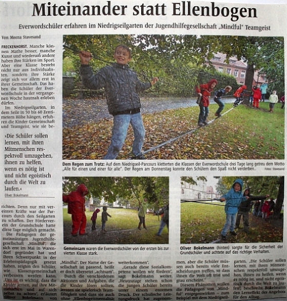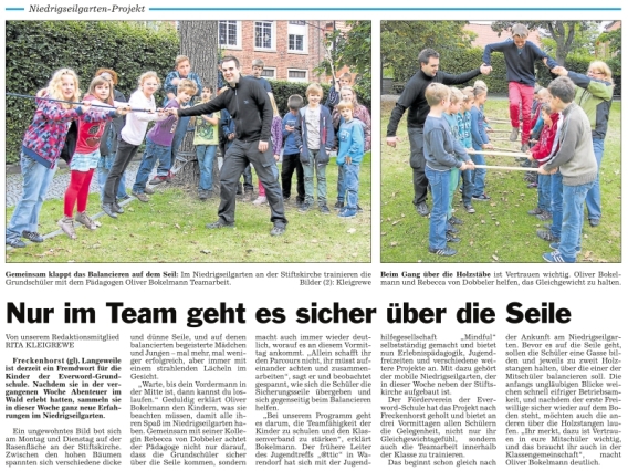 Erlebnispädagogik Miteinander statt Ellenbogen Artikel Westfälische Nachrichten 06.10.2012 als pdf-Dokument presse