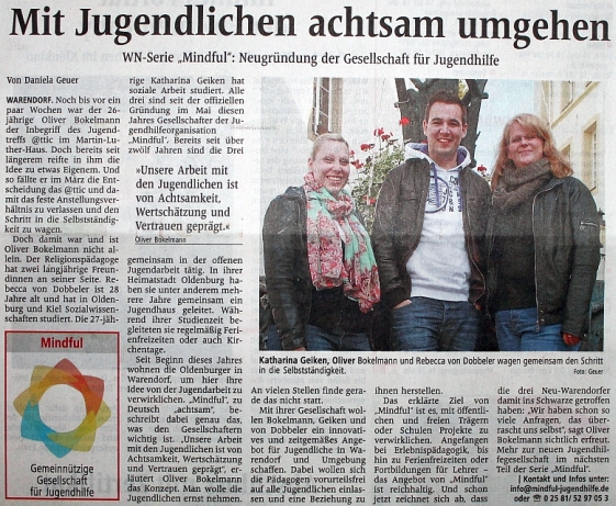 Zur MINDFUL-Gründung Mit Jugendlichen achtsam umgehen Artikel Westfälische Nachrichten 11.10.2012 als pdf-Dokument presse