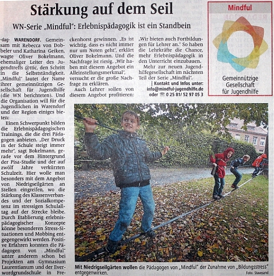 Erlebnispädagogik Stärkung auf dem Seil Artikel Westfälische Nachrichten 13.10.2012 als pdf-Dokument presse