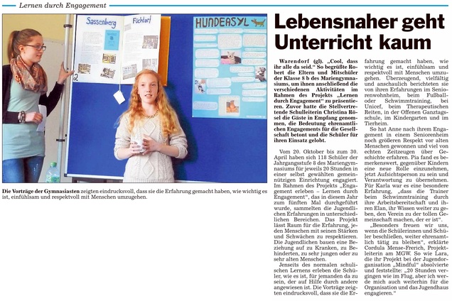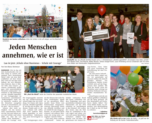 Projekte mit Schulen Jeden Menschen annehmen, wie er ist Artikel Westfälische Nachrichten 01.03.2014 als pdf-Dokument presse